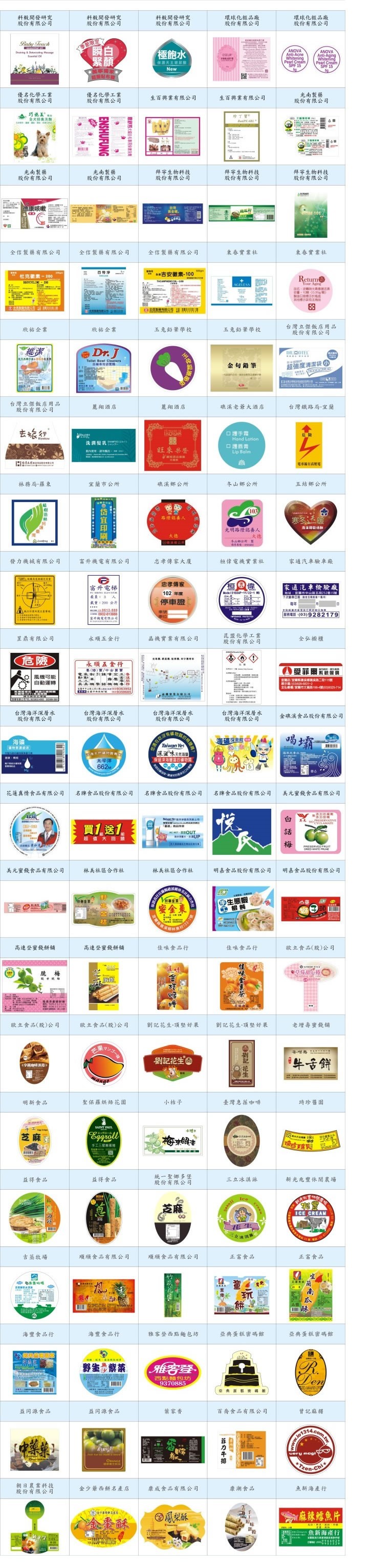 科毅開發研究股份有限公司 科毅開發研究股份有限公司 科毅開發研究股份有限公司 環球化妝品廠股份有限公司 環球化妝品廠股份有限公司 優名化學工業股份有限公司 優名化學工業股份有限公司 生百興業有限公司 生百興業有限公司 光南製藥股份有限公司 光南製藥股份有限公司 光南製藥股份有限公司 拜寧生物科技股份有限公司 拜寧生物科技股份有限公司 拜寧生物科技股份有限公司 全信製藥有限公司 全信製藥有限公司 全信製藥有限公司 東春實業社 東春實業社 欣佑企業 欣佑企業 玉兔鉛筆學校 玉兔鉛筆學校 台灣立傑飯店用品股份有限公司 台灣立傑飯店用品股份有限公司 麗翔酒店 麗翔酒店 礁溪老爺大酒店 台灣鐵路局-宜蘭 林務局-羅東 宜蘭市公所 礁溪鄉公所 東山鄉公所 五結鄉公所 發力機械有限公司 富升機電有限公司 忠孝傳家大廈 桓偉電機實業社 家通汽車驗車廠 罡鼎有限公司 永順五金行 晶機實業有限公司 昆盟化學工業股份有限公司 全弘櫥櫃 台灣海洋深層水股份有限公司 台灣海洋深層水股份有限公司 台灣海洋深層水股份有限公司 台灣海洋深層水股份有限公司 金礁溪食品股份有限公司 花蓮真情食品有限公司 名牌食品股份有限公司 名牌食品股份有限公司 名牌食品股份有限公司 美元蜜餞食品有限公司 美元蜜餞食品有限公司 林美社區合作社 林美社區合作社 明嘉食品股份有限公司 明嘉食品股份有限公司 高連登蜜餞餅鋪 高連登蜜餞餅鋪 佳味食品行 佳味食品行 歐立食品(股)公司 歐立食品(股)公司 歐立食品(股)公司 劉記花生。頂堅好果 劉記花生。頂堅好果 老增壽蜜餞舖 明新食品 聖保羅烘焙花園 小桔子 臺灣惠蓀咖啡 琦珍醬園 益得食品 益得食品 統一聖娜多堡股份有限公司 三立冰淇淋 新光兆豐休閒農場 吉蒸牧場 順頎食品有限公司 順頎食品有限公司 正富食品 正富食品 海豐食品行 海豐食品行 雅客登西點麵包坊 亞典蛋糕密碼館 亞典蛋糕密碼館 益同源食品 益同源食品 葉家香 百喬食品有限公司 曾記麻糬 朝日農業科技股份有限公司 金少爺西餅名產店 康成食品有限公司 康湖食品 魚新海產行